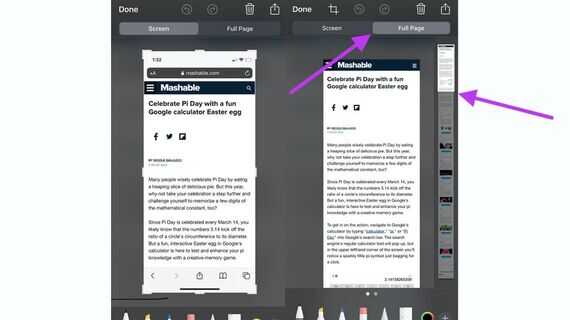首先在Safari浏览器中打开需要的页面,然后同时按下电源和音量增加按键进行截图,此时屏幕左下角会出现截图预览,点击该预览图,进入到截图编辑功能界面,在顶端会出现“屏幕”和“整页”两个选项,切换到“整页”标签,滑动屏幕右侧滑块即可调整网页截图长度。