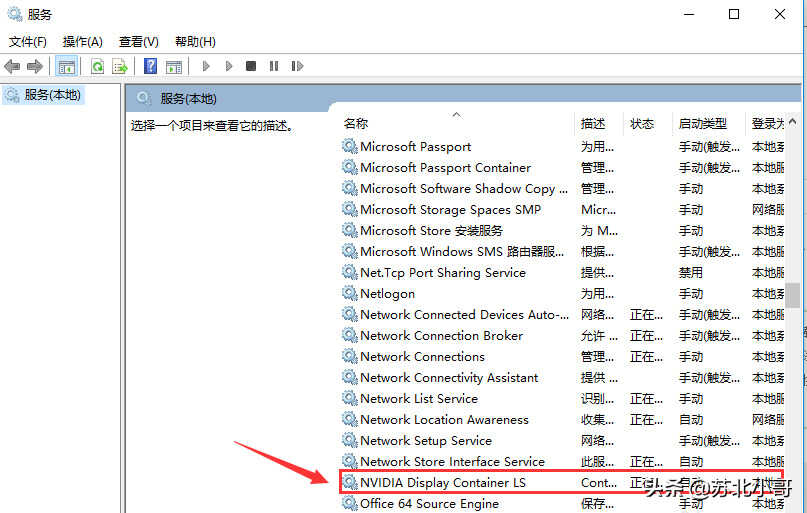 2、进入服务页面后,在右侧找到“NVIDIA Display Container LS”并双击进入下一页面