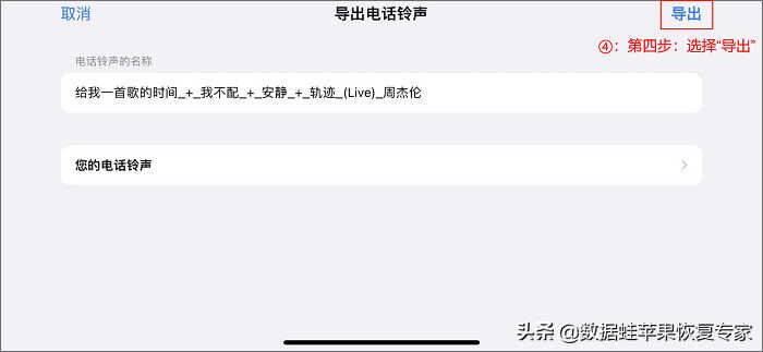 步骤2:选取好片段后点击【设置为铃声】,在弹出的新界面中选择【库乐队】即可;