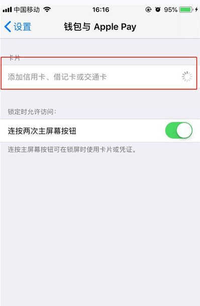 3、在钱包与Apple Pay界面中,点击【添加信用卡、借记卡或交通卡】;