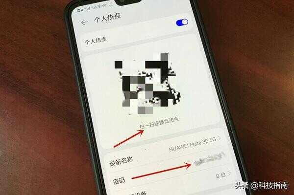 首先,以华为手机Mate30安卓手机为例,下滑菜单找到个人热点,长按个人热点快速进入设置界面,第一次配置的热点密码就出现了,也可以通过扫一扫连接热点。