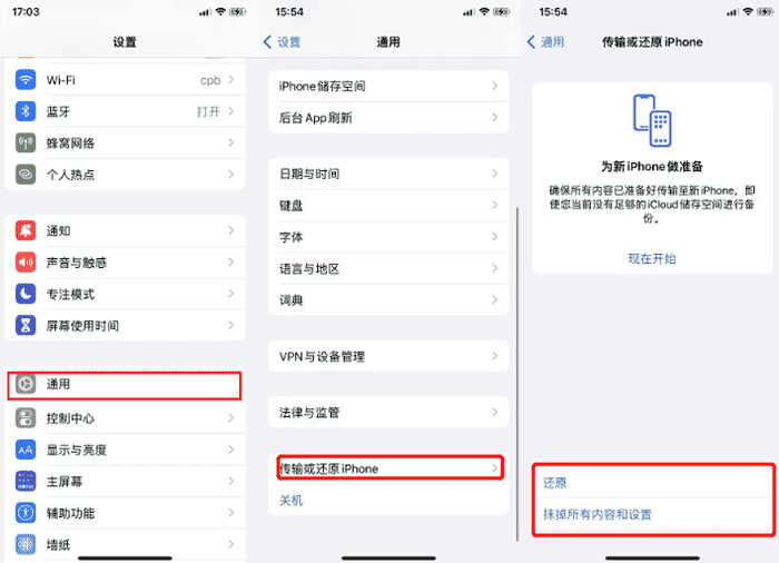 苹果手机依次打开【设置】-【通用】-【传输或还原iPhone】-【抹掉所有内容和设置】,完成前面步骤操作后,慢慢等待手机重启。之后,在应用数据栏目点击【从iCloud云备份恢复】。最后根据提示,等待微信聊天记录恢复即可。