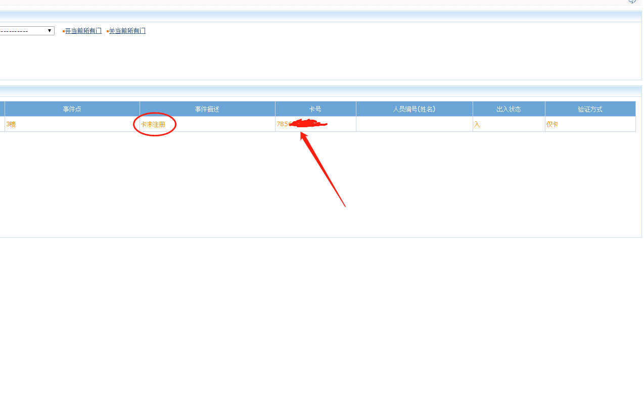 圆圈内显示该卡未注册,箭头指向的地方是出现一个卡号