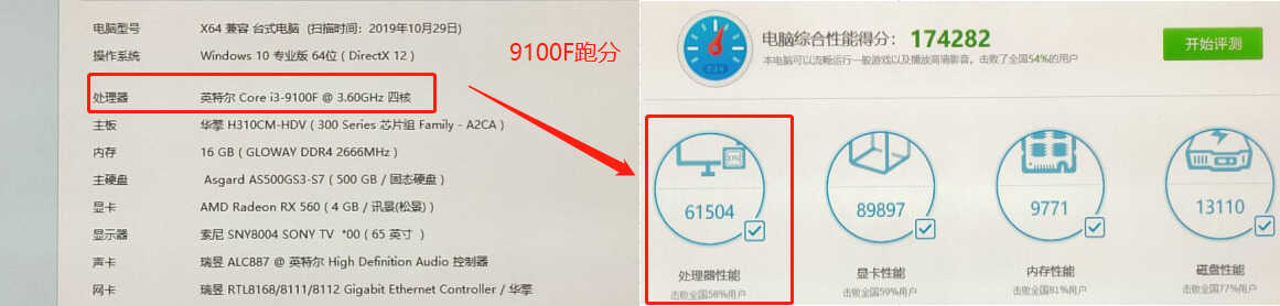 从跑分来看差不多在7w5以上,整体来说处于中端处理器级别,那么目前跑分在7W左右的新处理器有i3的9100F 9300 9350K这些处理器,准确的来说超越了9100F和9300,差不多和9350K持平,下面是9100F的跑分情况基本上在6W左右,但从参数来说9100F主频3.6GHZ要高于E3 1231 V3 的3.4GHZ,但是在线程上面E3的八线程要整整多9100F四线程,尤其是在多任务上优势明显,在某些吃单核性能的应用和游戏上面以及制作工艺上面9100F要占优势,除此之外E3 1231V3完胜。