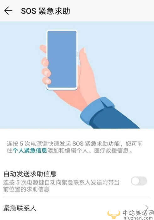 关于这个,牛站小编觉得是一定要学会的。如果是遇到了一些紧急或者特殊的情况,开启这个功能之后,只需要连续按5秒钟的电源键就可以自动给紧急联系人发送求助的信息。操作步骤:打开手机里的设置,然后我们点击安全与隐私选项,最后选择SOS紧急求助,选择紧急联系人就可以了。