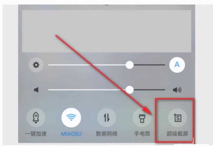 1、在手机屏幕主页,按住屏幕顶部从上往下滑,在弹出快捷功能中,点击“超级截屏”;