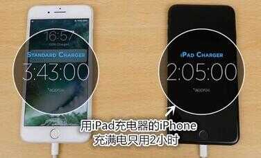 最近有个视频就测试了“用 iPad 充电器给 iPhone 充满电快多少”。