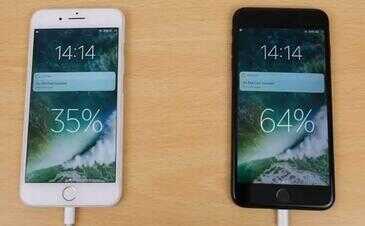 对两台 iPhone 7进行测试,进行了同样的手机设置,都从电量为 0% 开始充电。