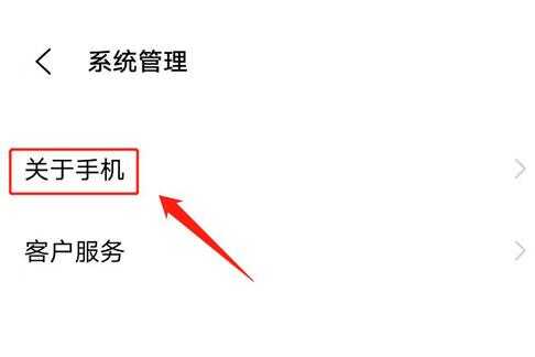 点击进入系统管理选项以后,下拉菜单找到“关于手机”选项。如下图: