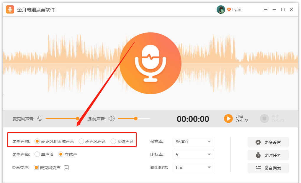 一、音频录制的方法非常简单,首先我们可以选择以下录音声源,根据自己的需要选择即可;