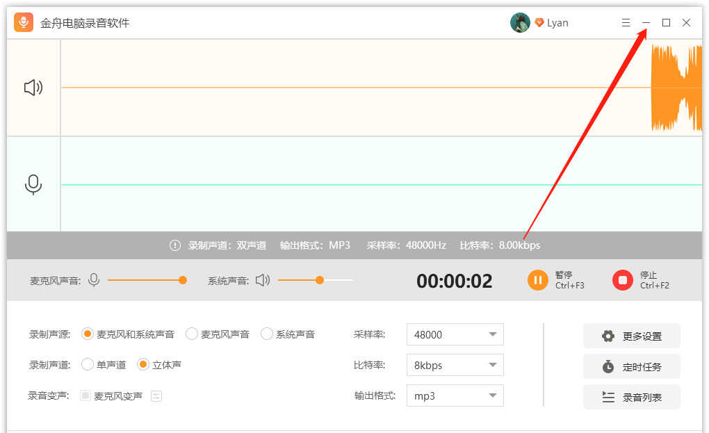 四、录制过程中为了避免影响电脑做其他操作,我们可以先将软件界面最小化;