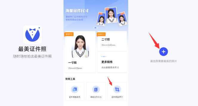 在手机的应用商店里下载完成后打开软件,在软件的首页选择“证件照改尺寸”选项,进入选择修改尺寸照片的界面,点击中间的加号,然后选择需要修改的照片就可以了