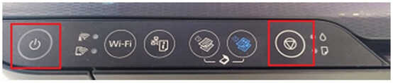 喷嘴检查:关闭打印机,先按住停止按键(倒三角)再按电源键,当打印机开始进纸时松开停止按键。