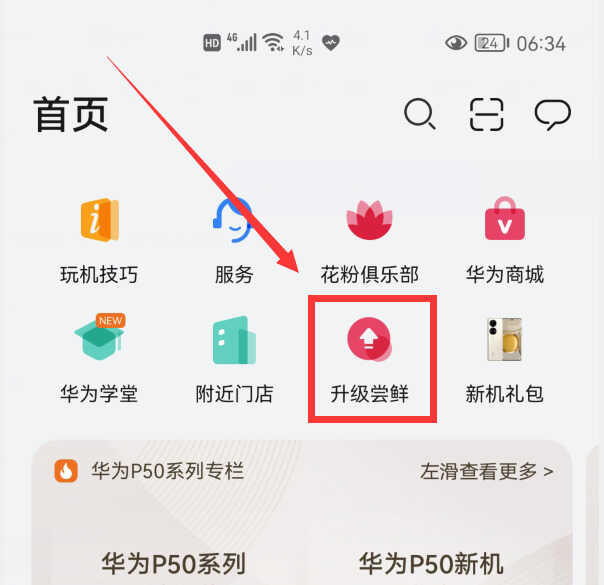 点击“升级”(老版本叫“升级尝鲜”),老版本会员中心会进入到“升级尝鲜”界面(如下图),点击升级尝鲜,然后就可以检查到鸿蒙系统的正式版进行升级。