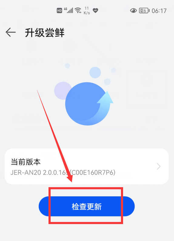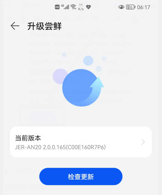 然后再点击“检查更新”就会检查到到emui系统的最新版本,然后点击升级就可以了。如果你的手机系统过去一直都没有升级过,可能没法直接升级到基线版本,你可以按上面的步骤多操作几遍,一直到基线版本为止。