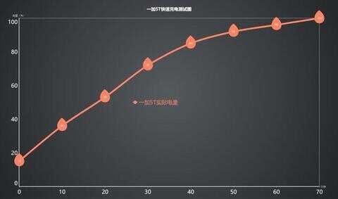 一加5T从15%开始充电。前30分钟充电速度以一个比较快的速率在增长,在40分钟过后,手机开始进入涓流充电阶段,充电速率开始放缓。充电30分钟后电量为72%,60分钟后电量为96%,完全充满则需要70分钟左右。