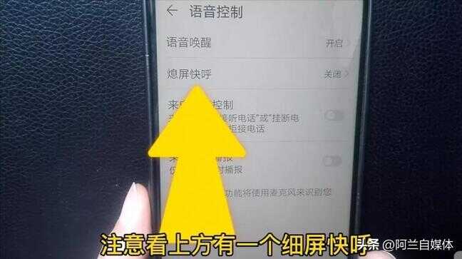 注意看上方有一个“熄屏快呼”,我们把它打开,在上方也有提示,息屏时长按音量下键,听到提示音后说出所呼联系人姓名或紧急电话号码,可快速呼叫。我们把熄屏快呼后面灰色的按钮点一下变成蓝色,就打开了熄屏快呼的功能。
