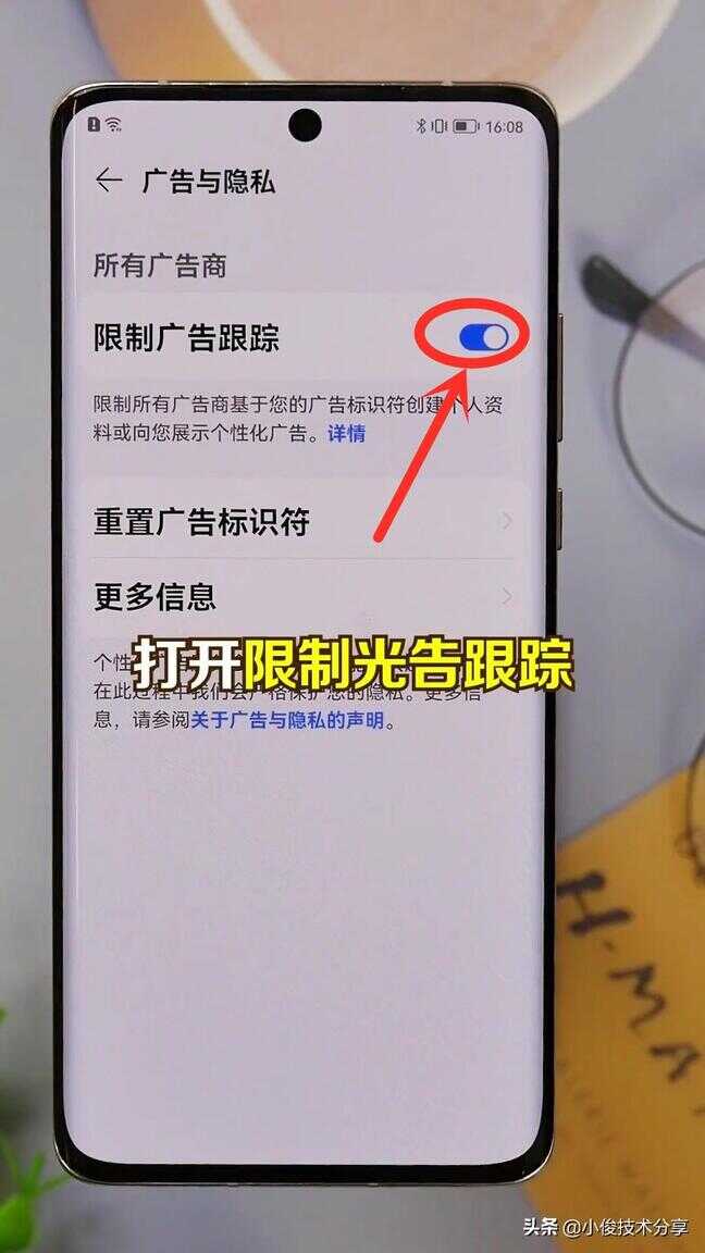 打开这个开关之后,再次往下点击【重置广告标识符】,我们直接将它重置!