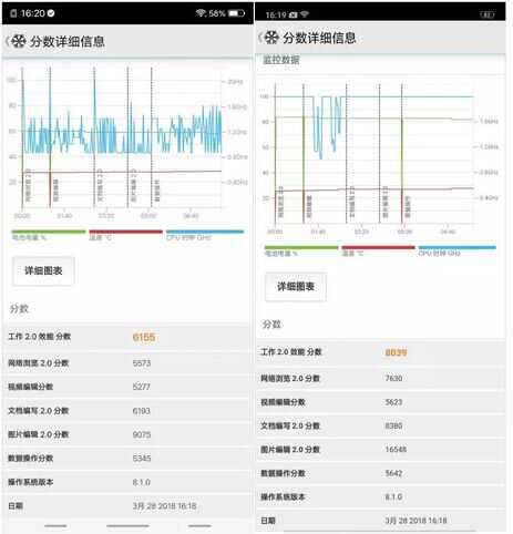 最终的测试结果让人大跌眼镜,前面所有的测试项目中都一路领跑的骁龙660竟然在PCMark 工作2.0测试中大比分落败。从各分项的得分情况来看,骁龙660主要在图片编辑部分与P60拉开了较大差距。