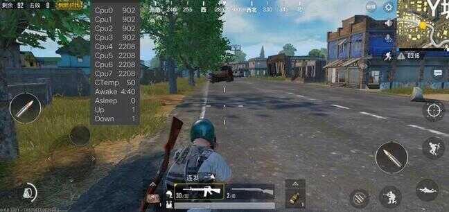 《绝地求生:刺激战场》是目前比较火的“吃鸡”类手游,对于手机的性能有着比较高的要求。通过核心检测工具我们可以看到,在均衡画质模式下,联发科P60在核心调用方面非常积极,八个核心全部上阵。其中四颗小核一直在1.9Ghz的状态下运行,其余的大核也在1.3GHz左右的频率,游戏画面比较流畅。