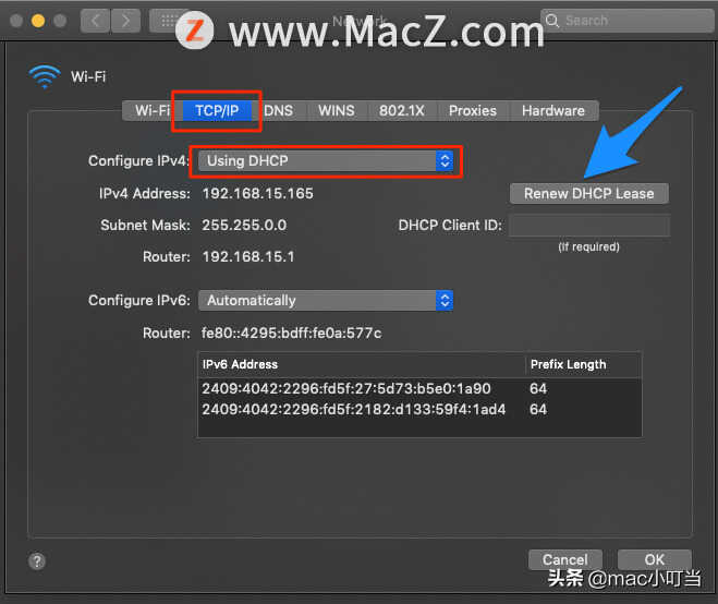 在Mac上更改TCP / IP4