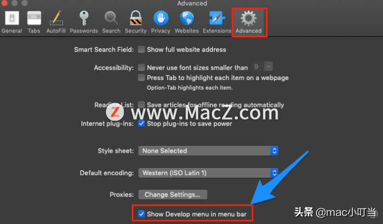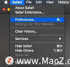 1.打开Safari,然后在菜单栏中单击Safari
