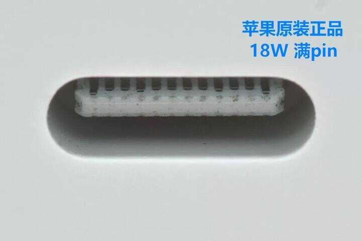 苹果原装正品 20W 使用的是非满 pin 母座,同样是光滑没毛刺。