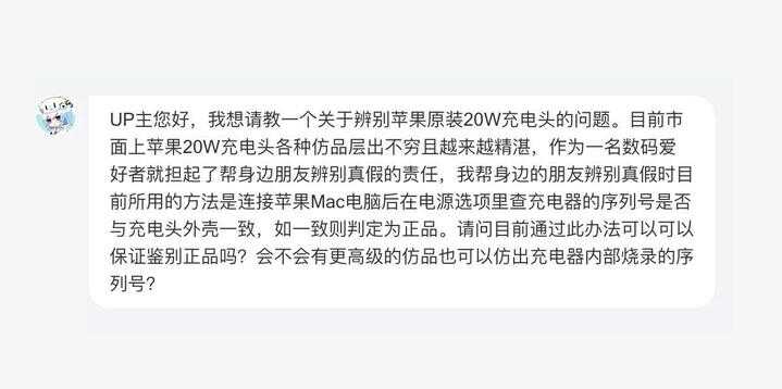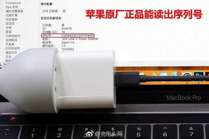 这位小伙伴留言字数很多,简单来说就是通过 MacBook 看充电器序列号能否判断真假。这里先说结论:序列号不能作为真假判断的唯一依据。