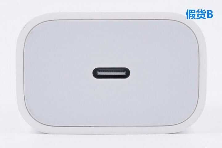这是假货 A 的 USB-C 接口微距图,母座物料跟苹果正品完全不同,一眼就能看出是假货。