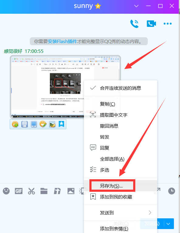 在图片上点击鼠标右键,在右键菜单中点击“另存为”,还可以把它保存到电脑硬盘里。