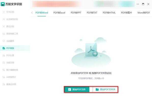 步骤一:打开软件,选择“PDF转换”中的“PDF转WORD”功能。