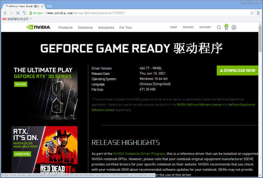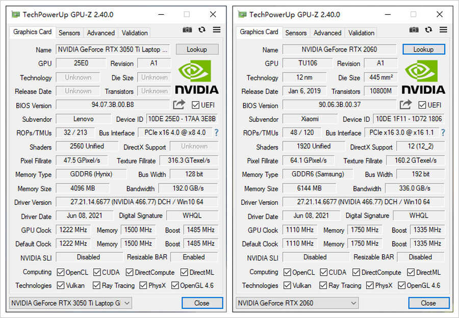 此次游戏对决,笔者均将两款游戏本的显卡驱动升级到了NVIDIA 466.77版本,以保证游戏测试的公平性。