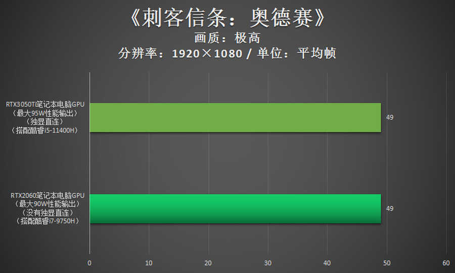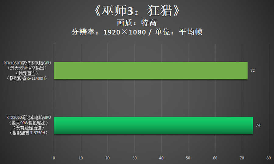 处理器、内存均要更好,还有独显直连设计,在这么多优越的条件下,RTX3050Ti笔记本电脑GPU展现出来的游戏性能说实话是不如上一代RTX2060笔记本电脑GPU的。
