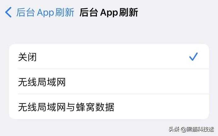 其实在我看来,除了聊天软件,其它APP都没必要在后台自动刷新,我们没必要第一时间知道它发生了什么。我个人是仅聊天软件允许后台刷新,其它不重要的APP全部禁了。