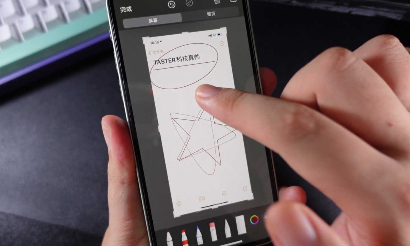 点击即可进入截图页面,下方的包括各种画笔,点一下即可选中,再点一下即可调出设置面板,包括颜色深浅和画笔的粗细。画笔操作上,比如我们要划重点,需要笔来画一条直线或者画一个圈,但是用我们的手指头很容易画不直,然后就很难看。