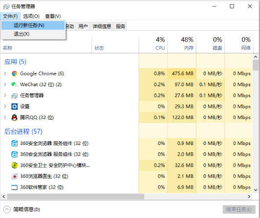 2.点击资源管理器网页上的左上角文件,“运作新要求”。