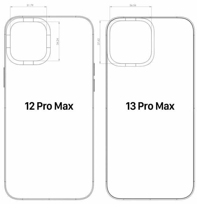 单从设计图上看,新款 iPhone 13 系列的三枚镜头,包括广角、超广角和长焦镜头,都比 iPhone 12 系列的更大。