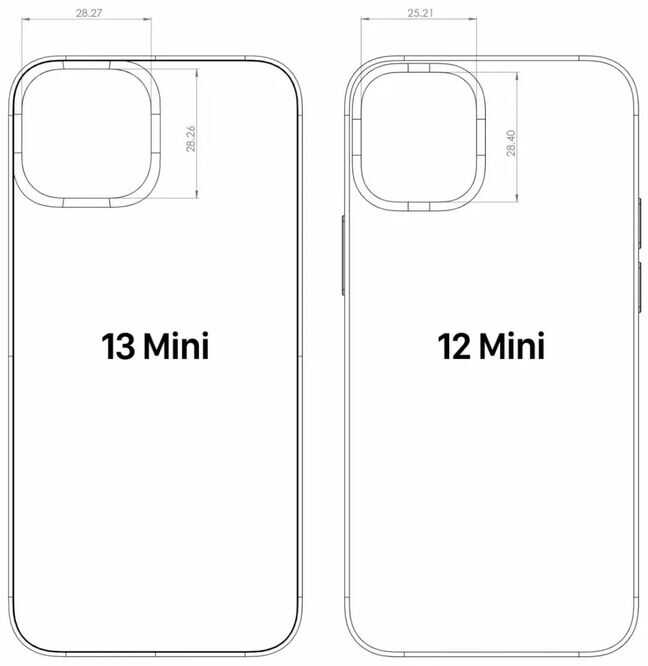 iPhone 13 mini 的镜头模组也变大了一些,从原本的宽高 25.21mm × 28.40mm 增加到 28.27mm × 28.26mm,iPhone 13 mini 的镜头模组尺寸比起 iPhone 13 Pro Max 来说还是要更小些。
