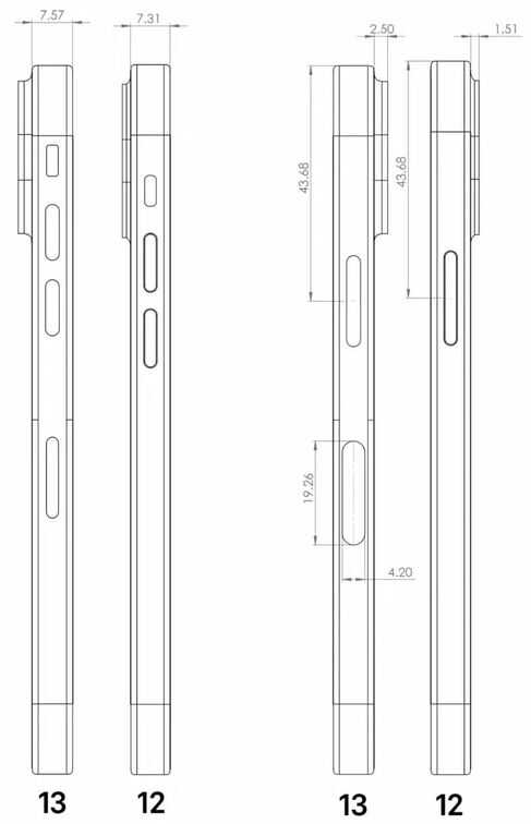但从镜头模组的尺寸来看,iPhone 13 系列将不能适用 iPhone 12 系列的保护壳。