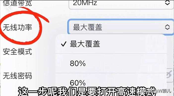那这里设置好以后呢,我们再看下面这个呢,是无线功率,这一步呢,我们是要打开高速模式,把这个传输的功率设置为高或者是最大覆盖,