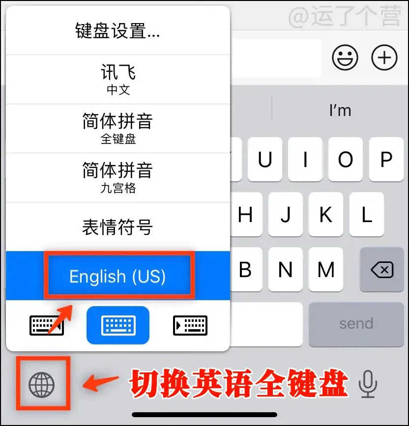 首先打开任意聊天窗口,将手机输入法切换到“英文全键盘”模式。