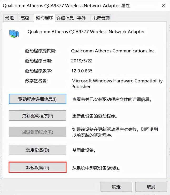 3. 单击左下角的卸载设备,win10会在重启时重新安装设备。重启后就可以连上网络了。