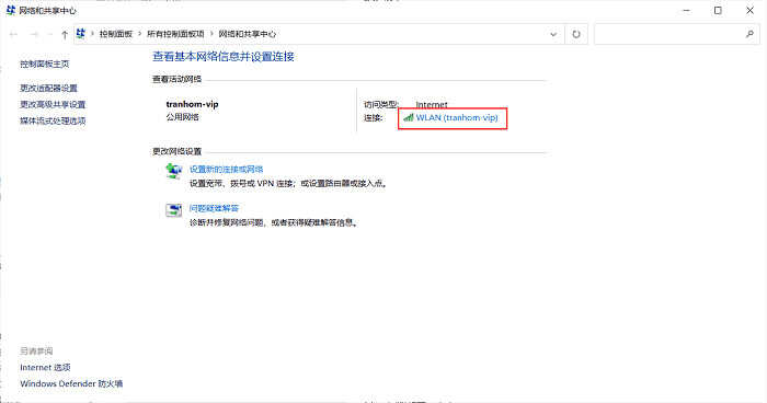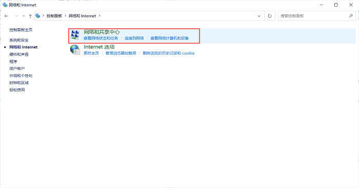 2. 依次单击网络和Internet、网络和共享中心,单击左侧的更改适配器设置。
