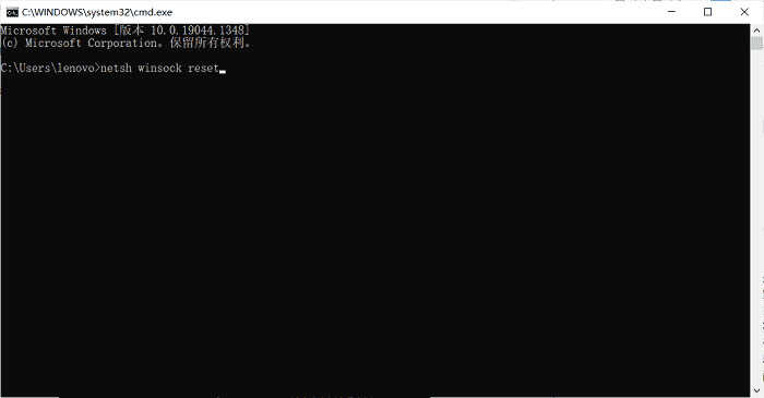 2. 把输入法切换到英文输入法,输入netsh winsock reset,按下键盘上的回车键确定。