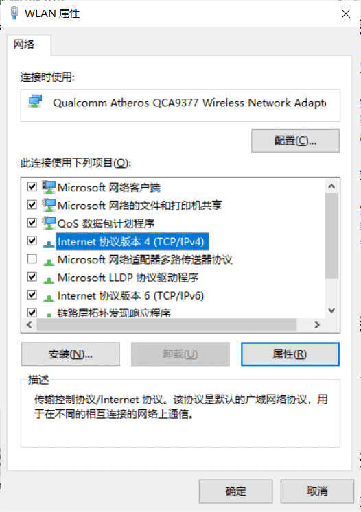3. 右键单击WLAN,选择属性,在下方面板中,找到Internet协议版本,单击属性后即可查看电脑IP。