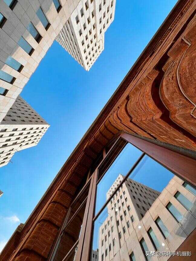 仰角度:利用超广角仰角度拍摄相较平视拍摄建筑会更显宏大,采用竖构图拍摄时,无论建筑、风光还是人像,都能更显线条的延展修长。