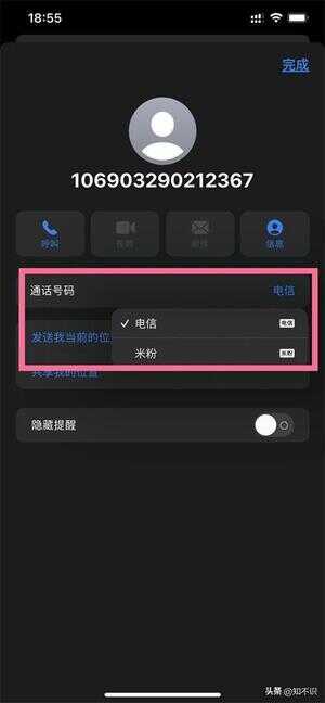 第二步:进入此页面之后,选择并点击通话号码即可切换主副卡(如下面图片所示)。