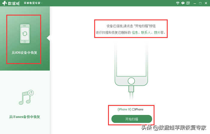 第1步:下载后打开,已经插上了USB数据线的小伙伴可以直接点击【开始扫描】按钮,没有插上的小伙伴们插上之后再点击【开始扫描】即可;