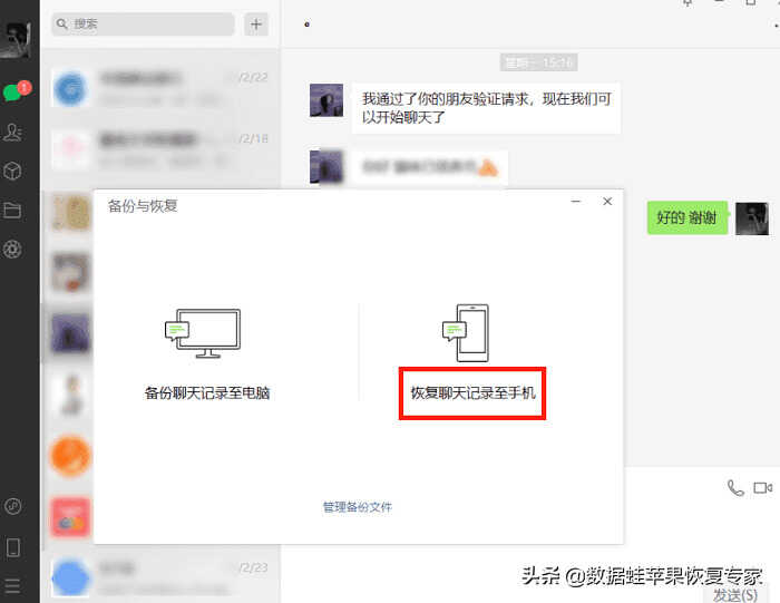 第2步:在弹出的新页面中,选择【恢复聊天记录至手机】。