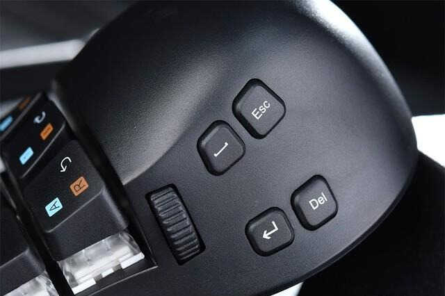 除了正面的按键之外,鼠标在左右两侧也设置了侧键,左侧有一个滚轮键和四个按键,默认模式下分别为空格键、ESC、回车键和Del键。右侧为DPI键和鼠标按键逻辑切换按钮,配合鼠标9枚主键使用,用这只鼠标就可以满足基本办公需求。